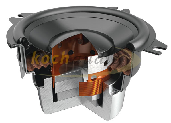 The aluminium cone, in combination with the copper shorting ring that flattens the impedance, allows for the response to be extended up to 20 kHz. The special magnetic group made with double symmetrical Neodymium magnet also contributes to achieve this exceptional extension at high frequencies while maintaining very compact dimensions.